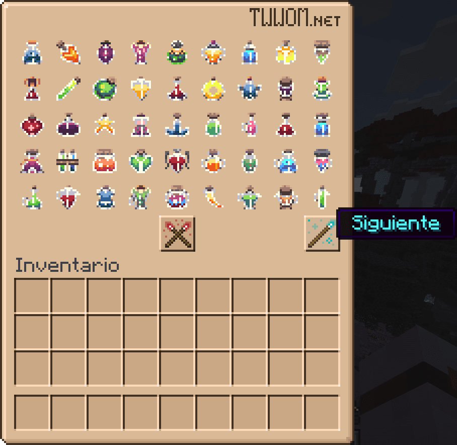 Los encantamientos, son el conocido método para mejorar armas, armaduras, y herramientas. TWWOM también extiende el funcionamiento de mecánicas que ya existen en el juego base.